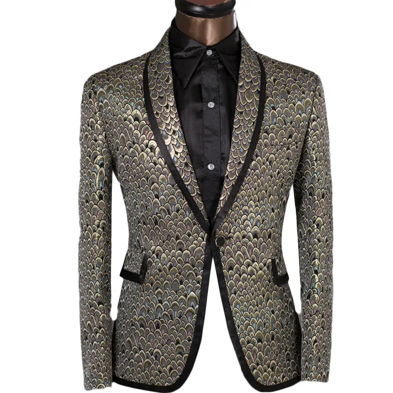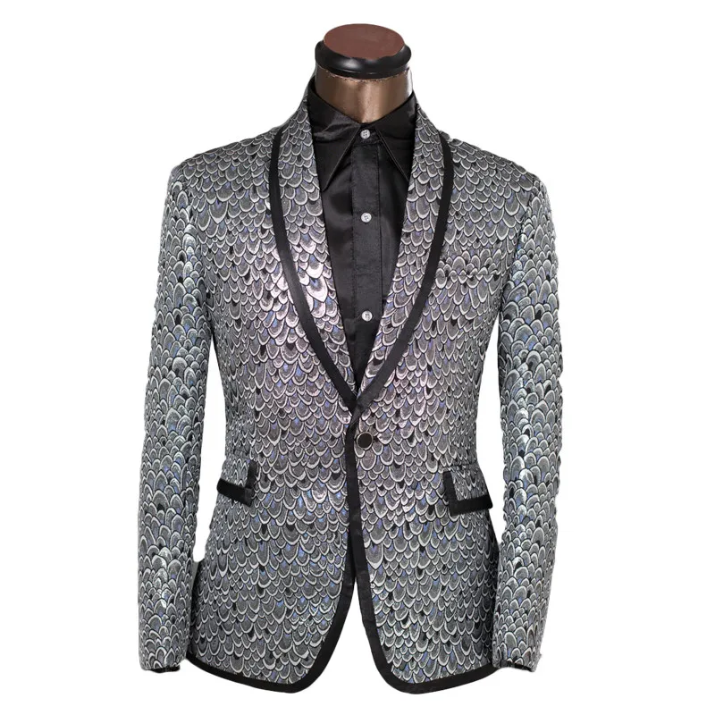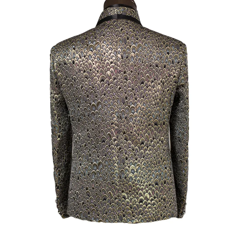 Without a doubt, this Glossy Scale Embroidered Suit is a must-item for a man's wardrobe. Perfect gift for friends, other significant, and family. What do you think about this suit?