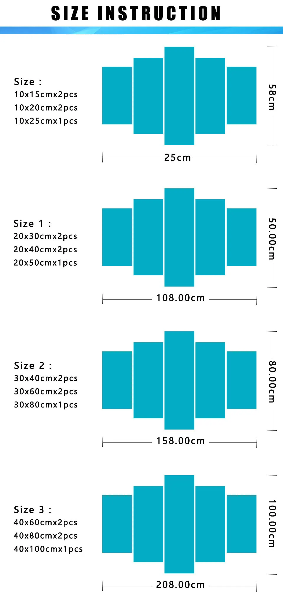 Size2:30x40cmx2,30x60cmx2,30x80cmx1 (12x16inx2,12x24inx2,12x32inx1)