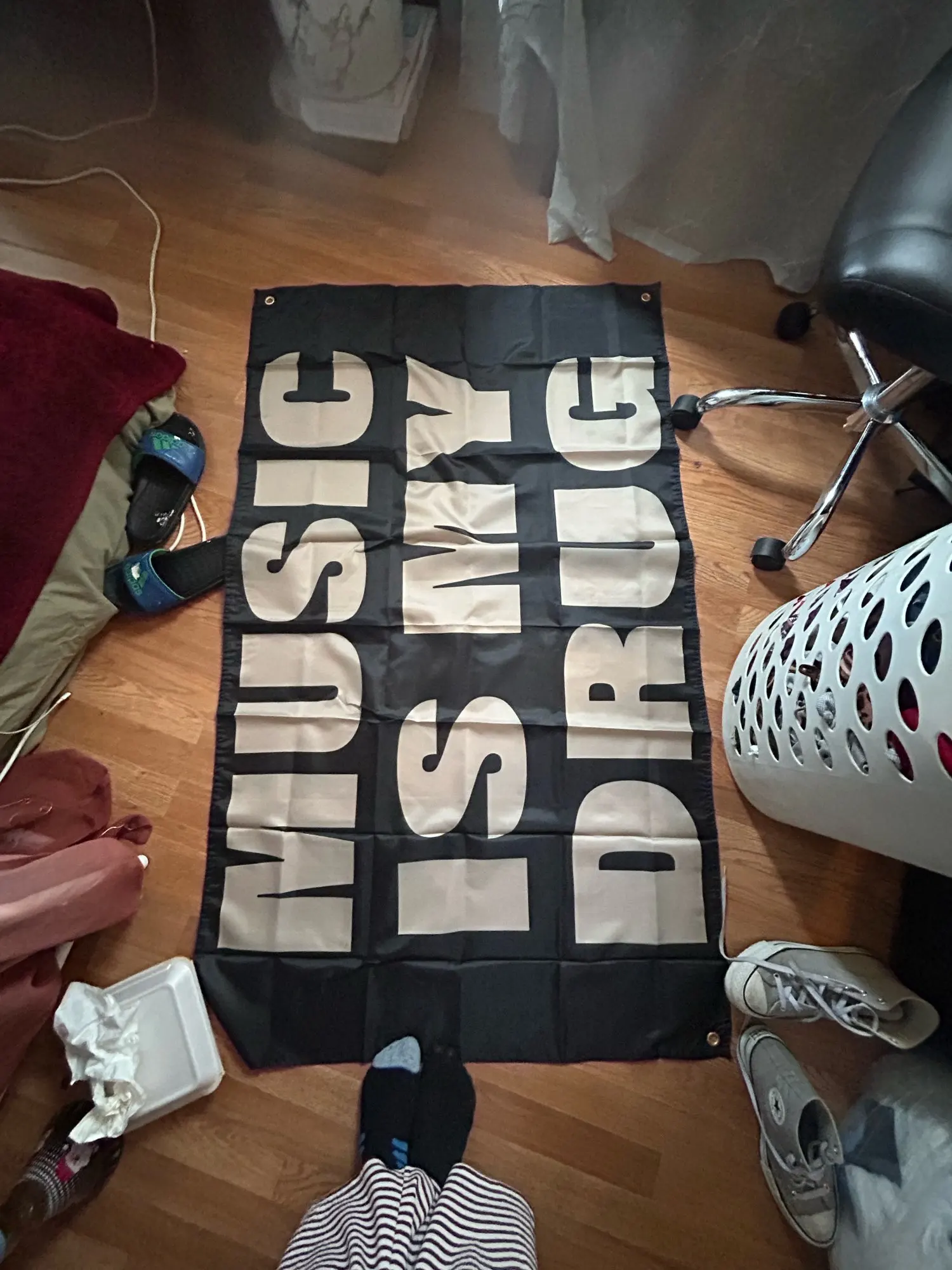 Celebrate your passion for music with this vibrant MUSIC IS MY DRUG Flag Wall Banner Decor.