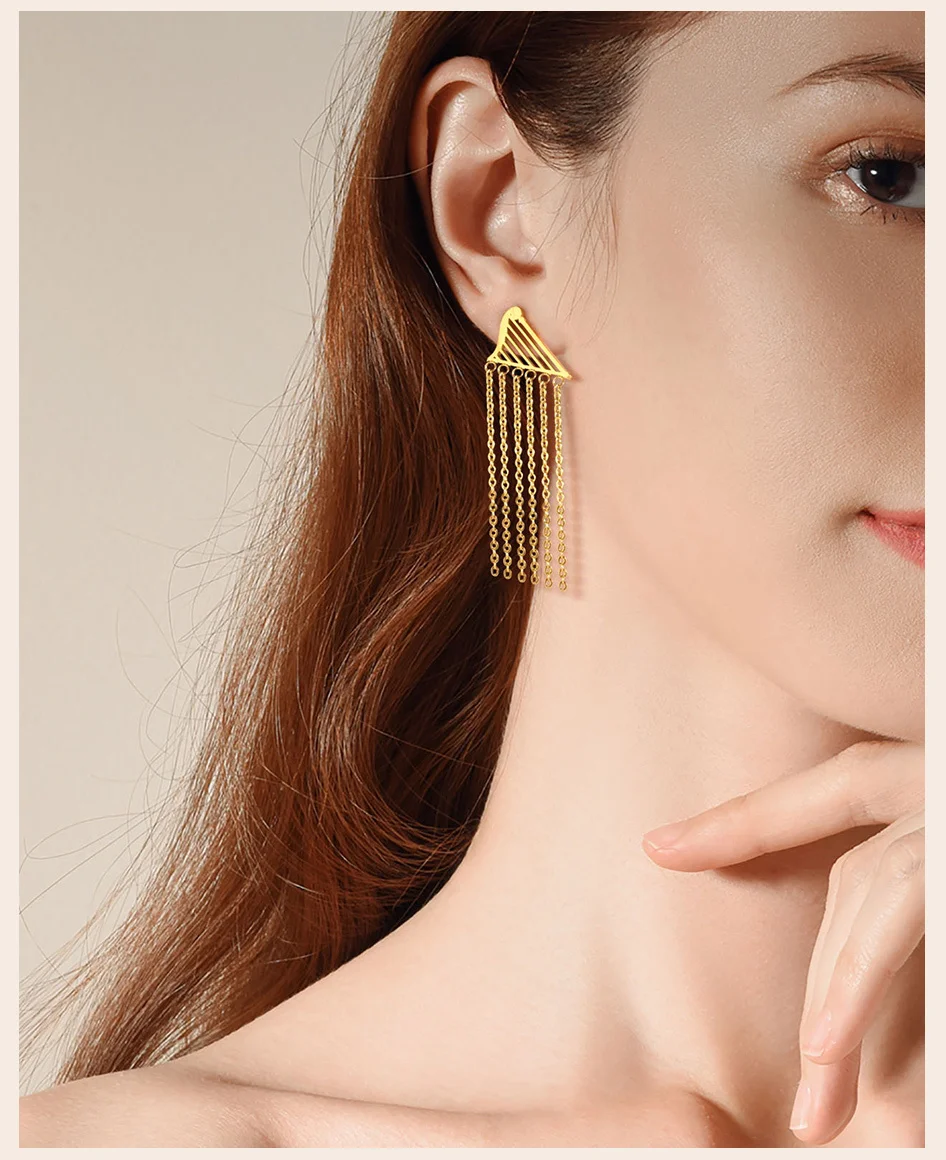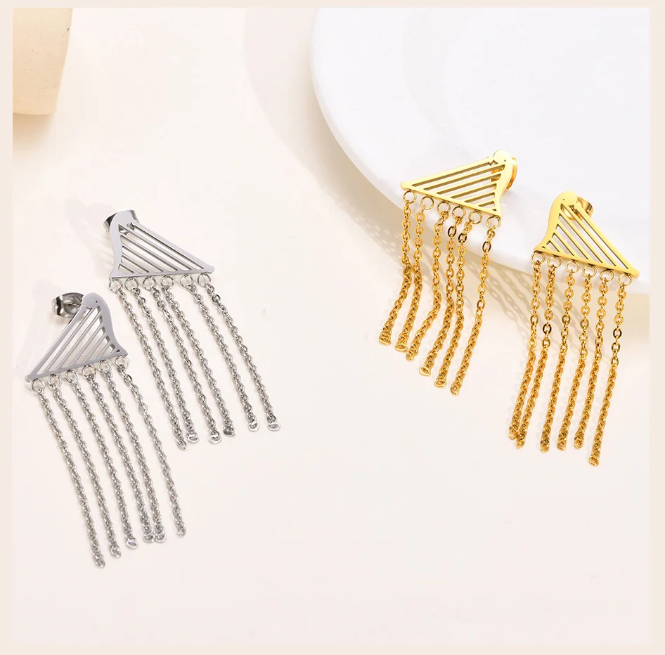 This Harp Tassel Earrings are the perfect accessory to add a touch of elegance to any outfit. They feature a beautiful design with a tassel detail that will make you stand out from the crowd. Made from high-quality materials, they are comfortable to wear and will last you a long time.