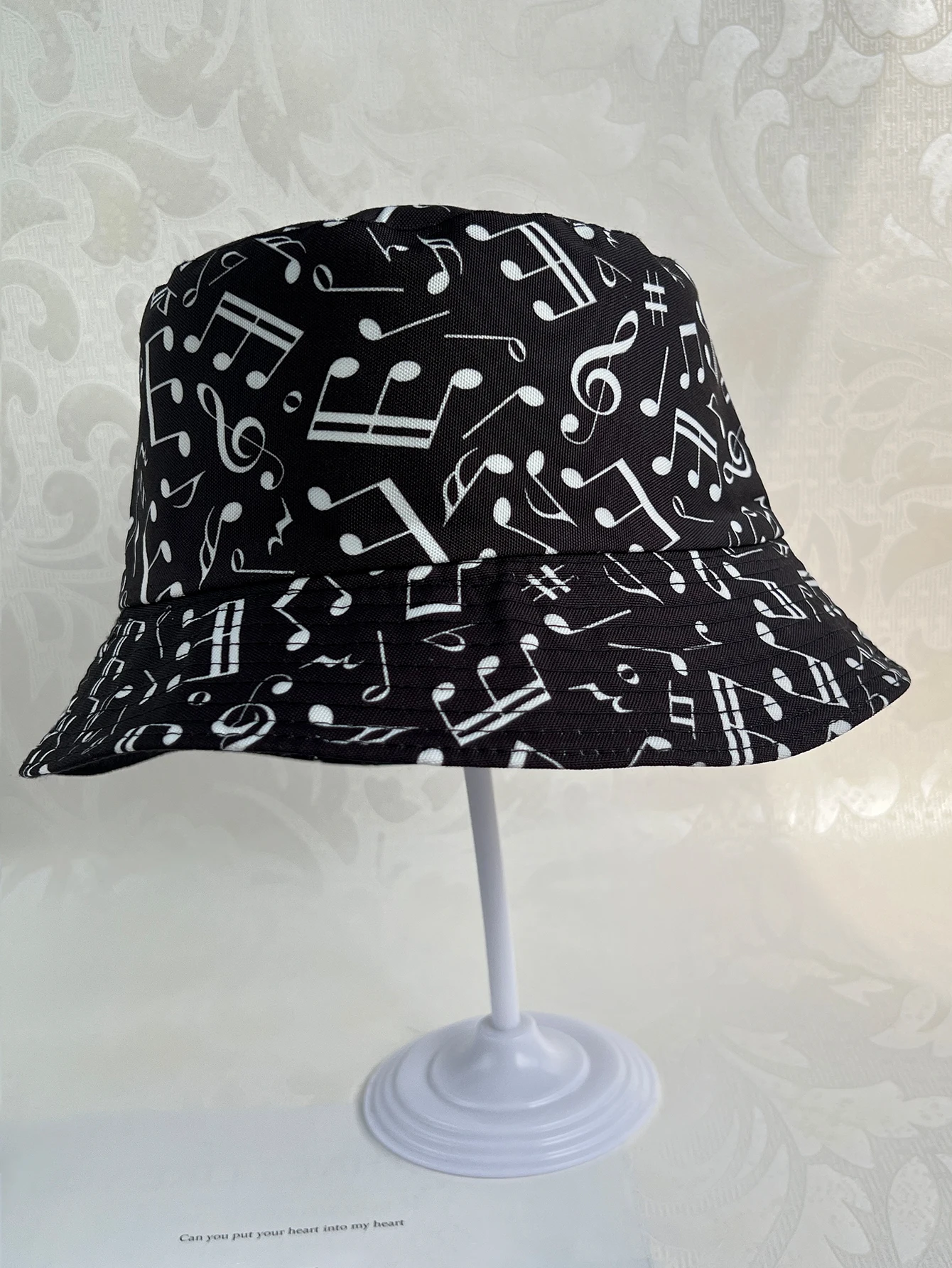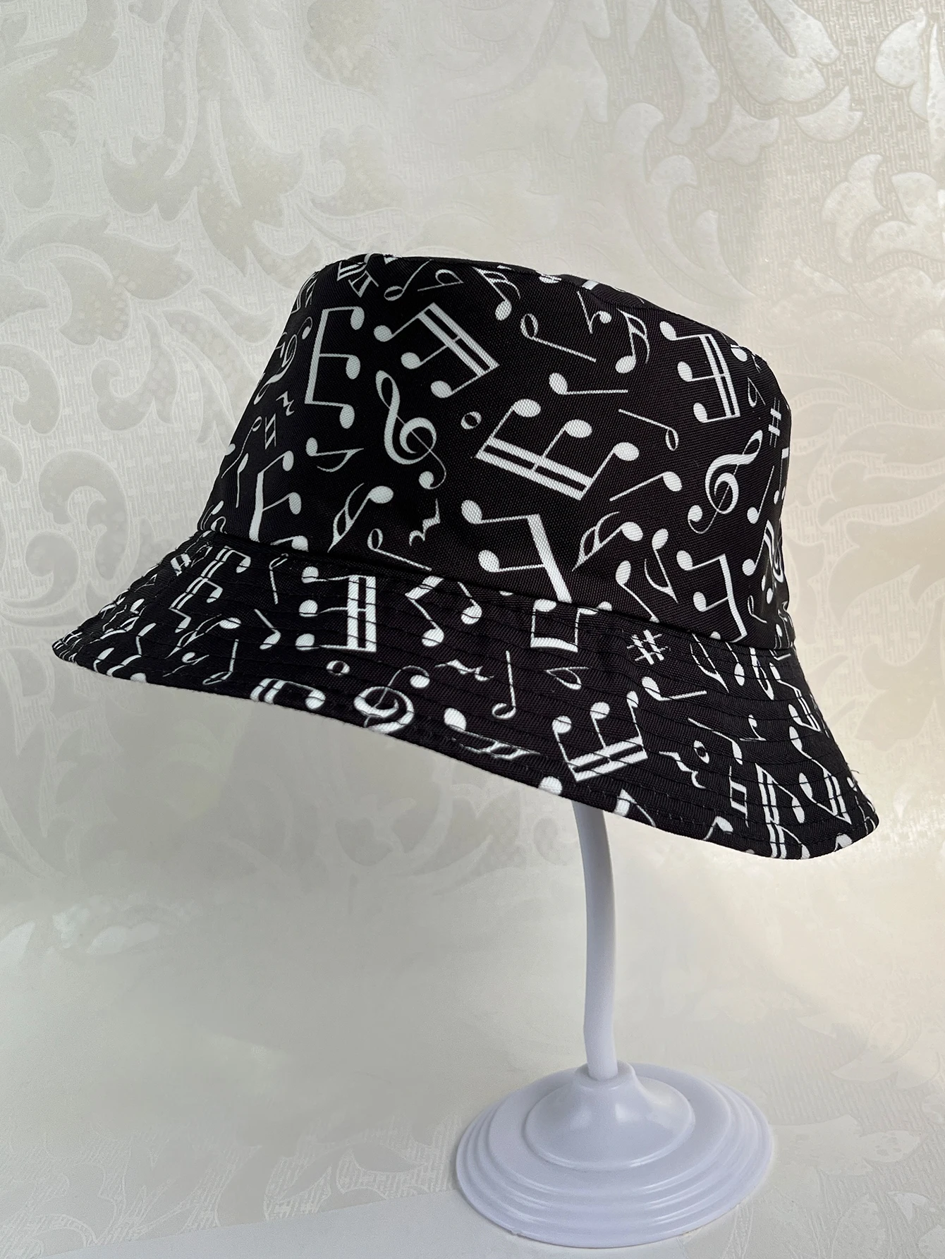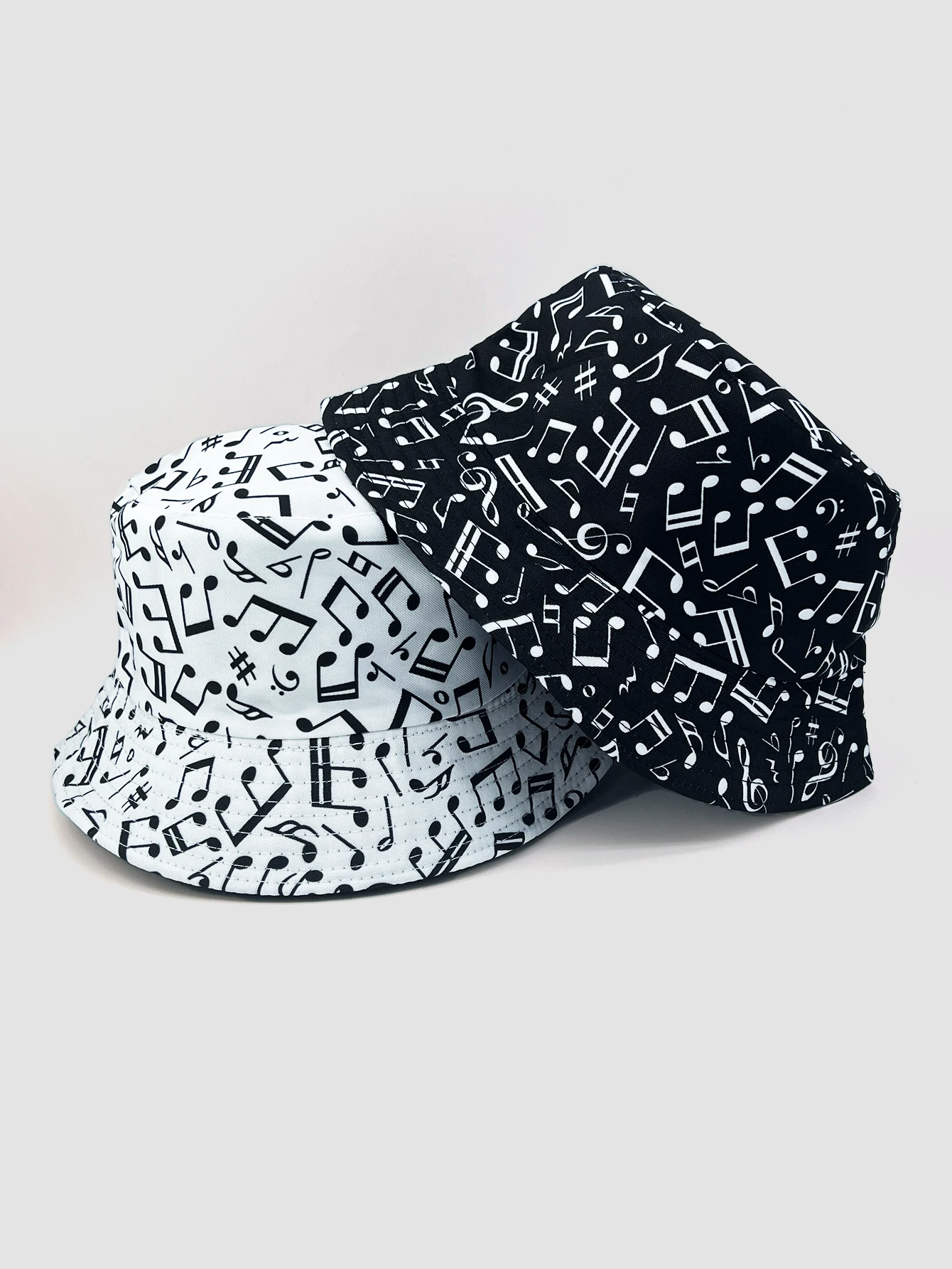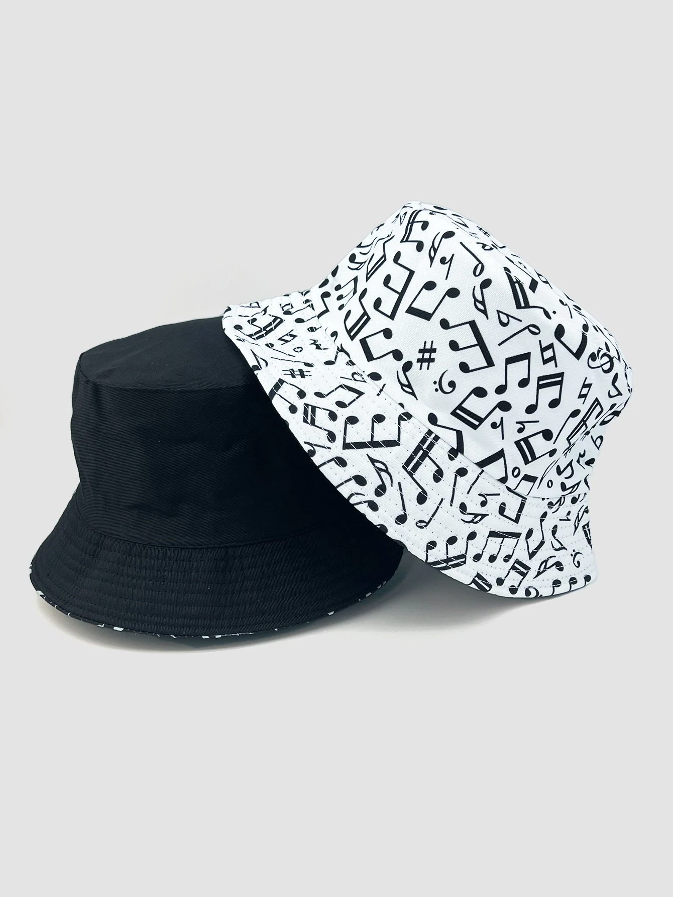 Love music? Wear it on your head with this Reversible Music Notes Bucket Hat! One side has a funky music note pattern, while the other is a solid color - perfect for when you're in the mood to switch things up. Get your groove on in style!