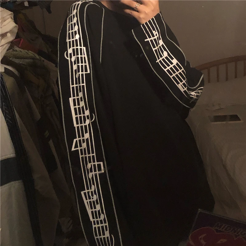 Reflective Music Notes Sweatshirt comes in the latest style with the design of music notes. You'll be glow at night with the light reflection style at both sleeves.
