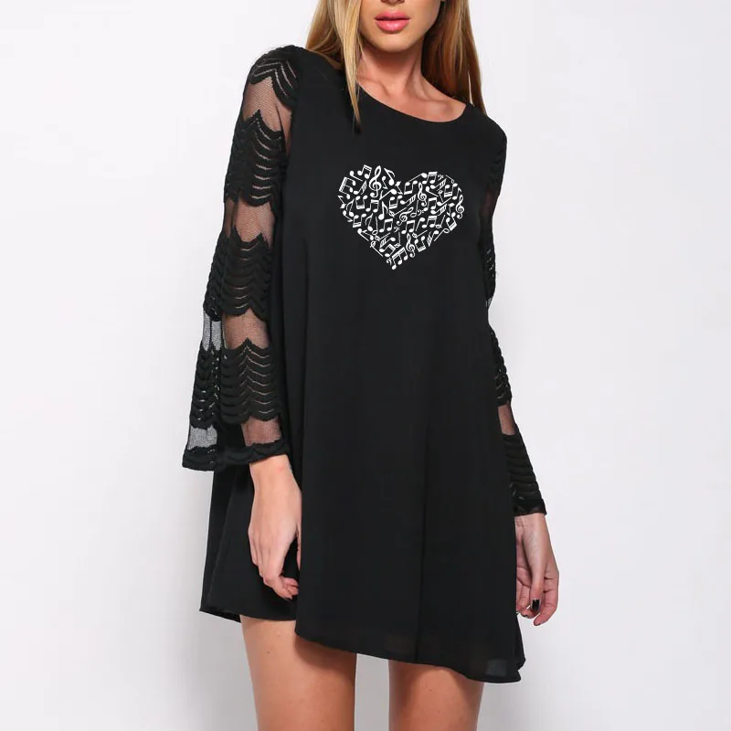 Music Heart Mesh Lace Dress is a creative music symbol printing, fashion design. Wearing this is like you show how much music means to you.
