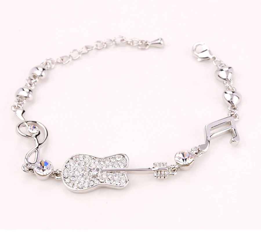 Music Note & Guitar Shaped Bracelet is made from high-quality Zinc Alloy and unique Crystal. Imagine how charming if this bracelet is on your wrist now.