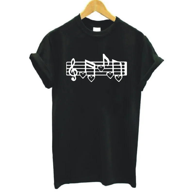 Music Notes Heart Print T-shirt absolutely brings joy to you while wearing it! It reminds you and everyone how much music means to you. Do you love it?
