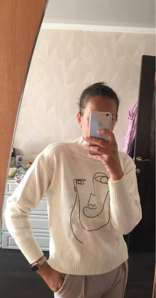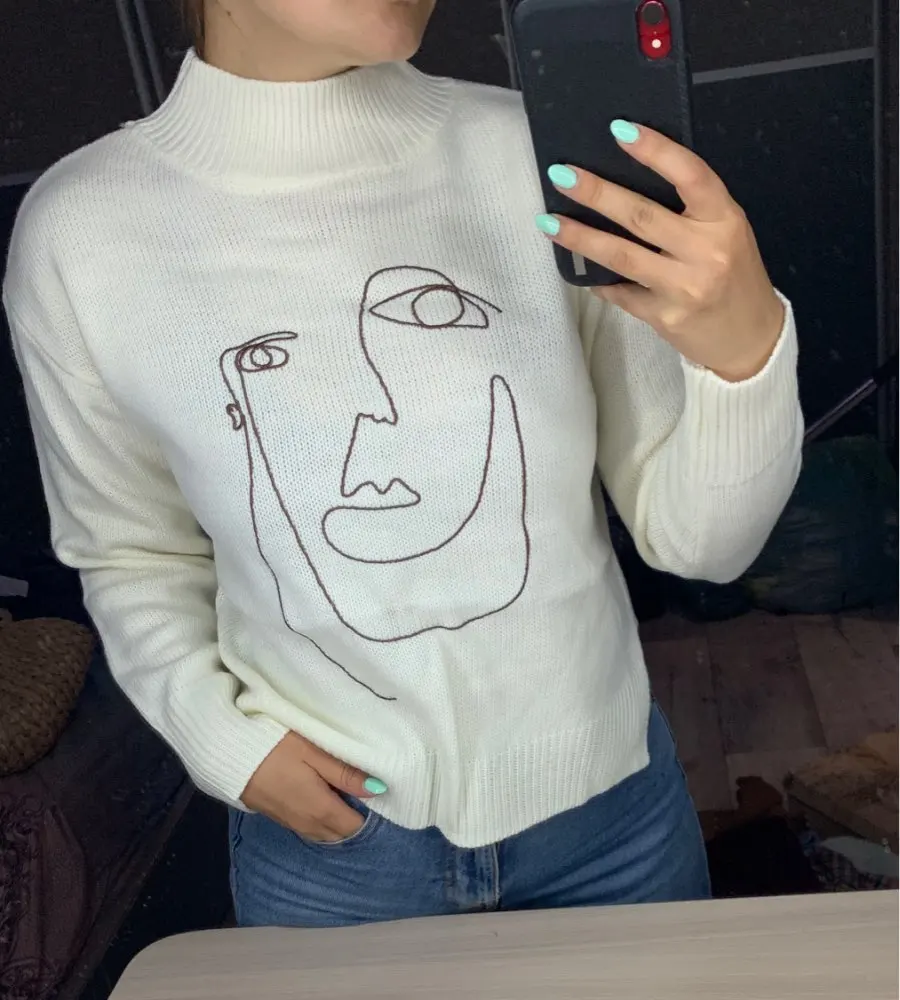 In love with this Geometric Face Turtleneck Pullover? Made with high quality of materials, comfortable and beautiful at the same time.