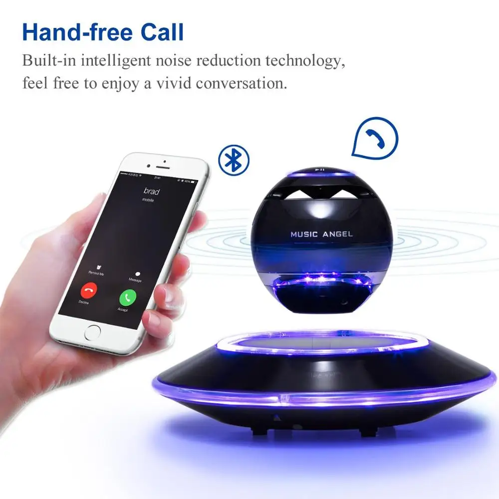 MUSIC ANGEL Levitating Speakers allow you to sync with your favorite Bluetooth-enabled device for a seamless, cordless listening experience. Say goodbye to boring, bulky, boxy speakers!