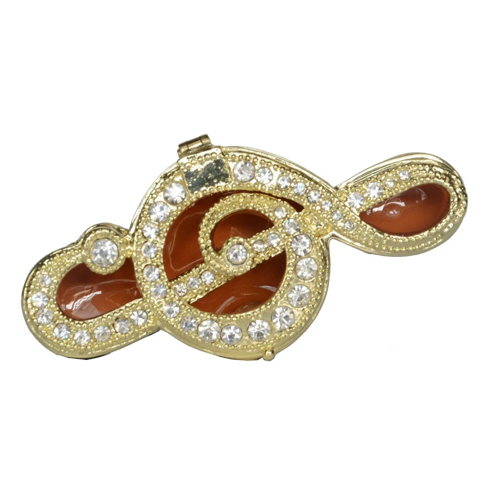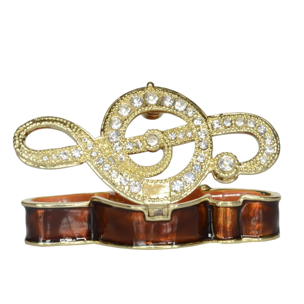 Add a touch of luxury to your jewelry collection with our Sparkling Music Treble Clef Trinket Box. This exquisite trinket box not only serves as a beautiful ring holder and jewelry container, but also makes for a unique and creative gift. Crafted with zinc alloy and hand painted with vibrant enamel colors, it is adorned with sparkling crystal stones for an elegant touch.