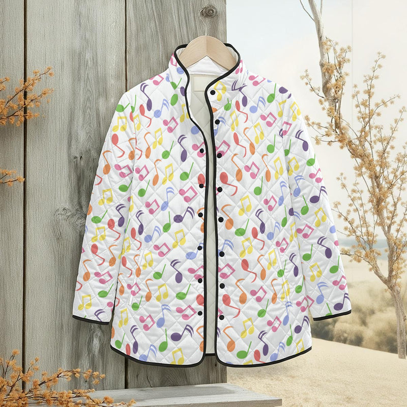Strike a chord with style in this vibrant Colorful Music Notes Unisex Quilted Jacket.