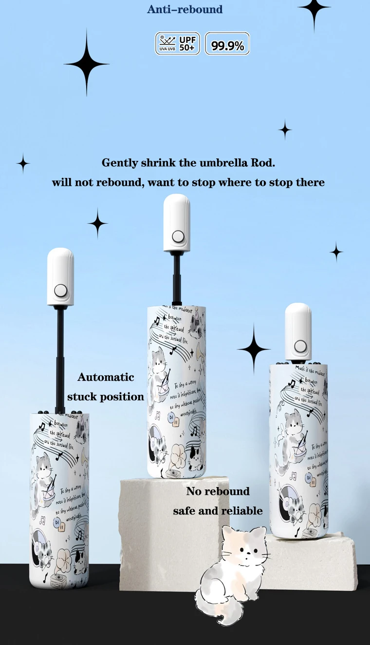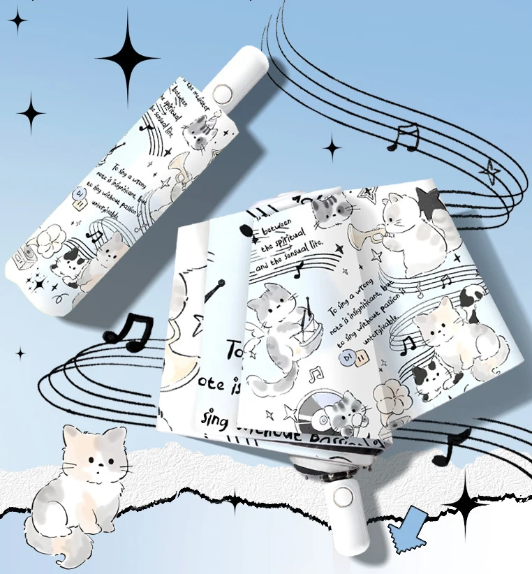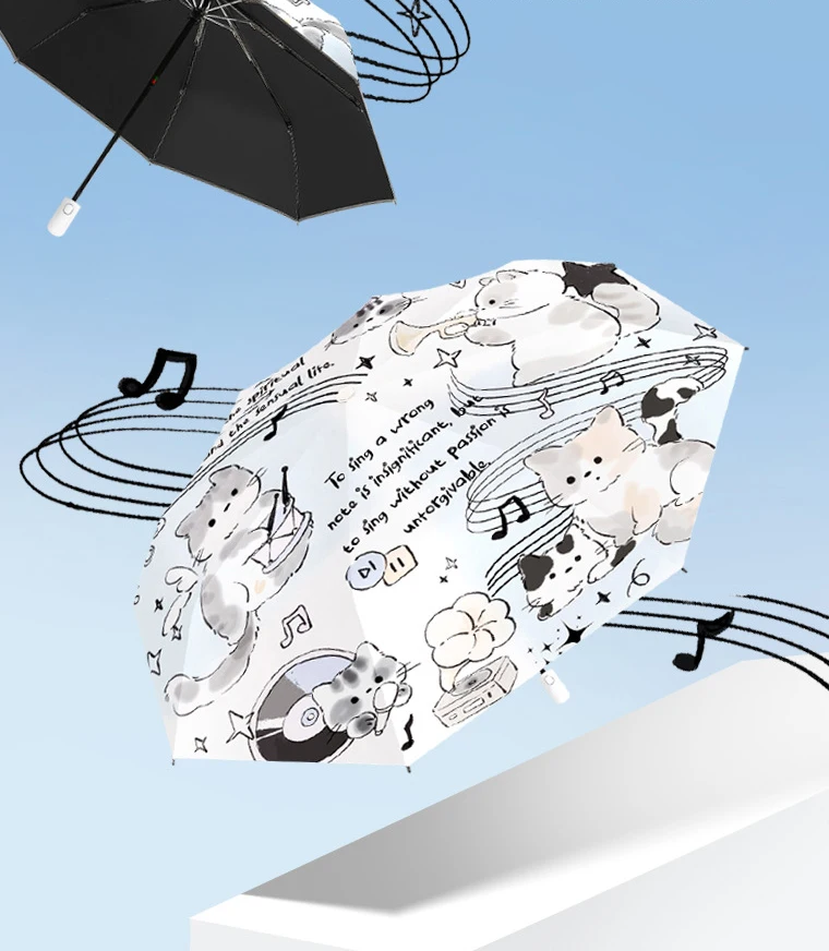 Featuring a charming cat design that seems to dance to your favorite tunes, this umbrella brightens rainy days with a playful beat.