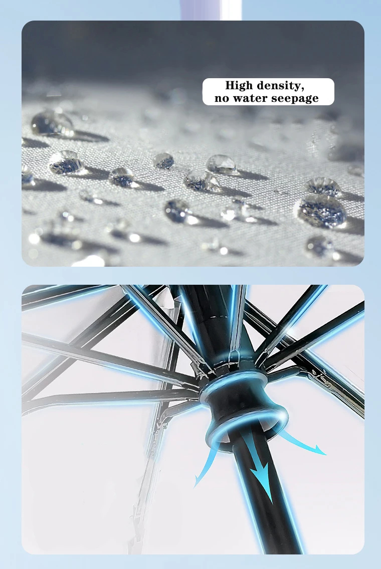 2. High density umbrella cloth, wear-resistant and waterproof, high toughness, digital printing, sunny and rainy days can be used.