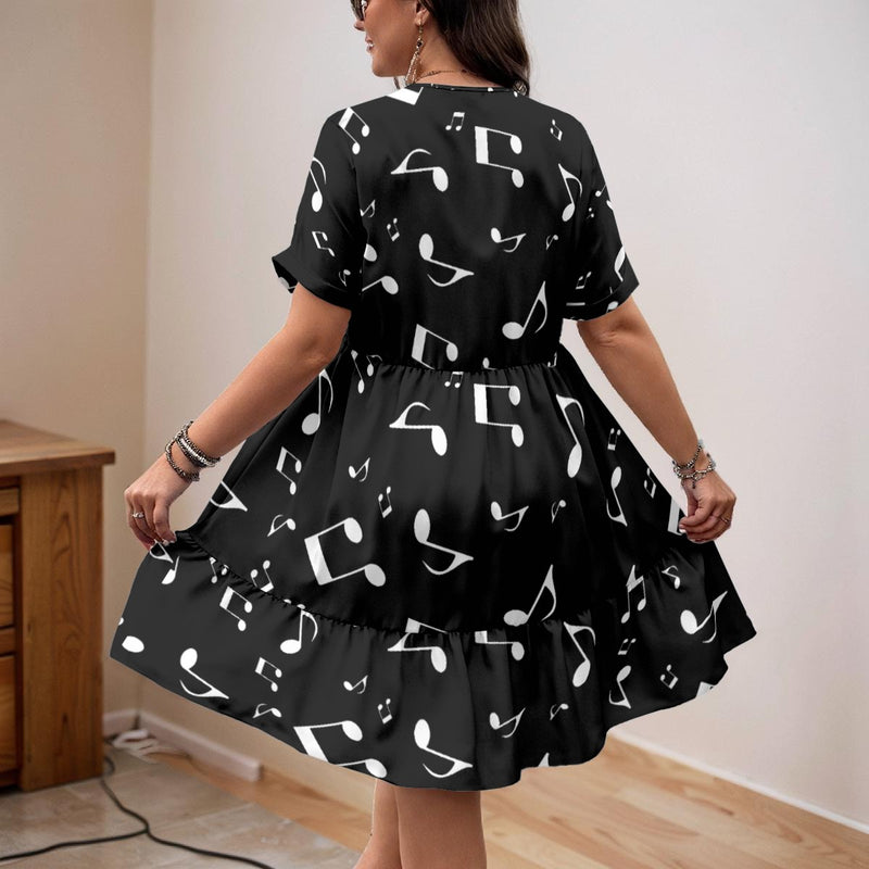 Elevate your everyday style with this charming Music Notes V-Neck Short Sleeve Dress.