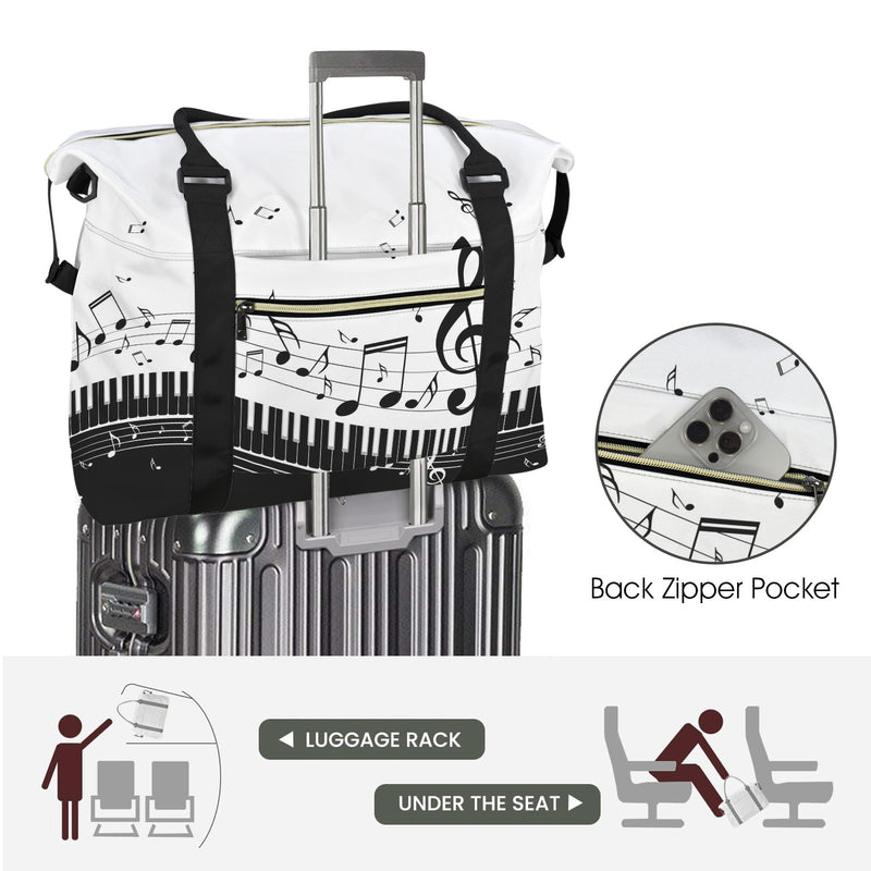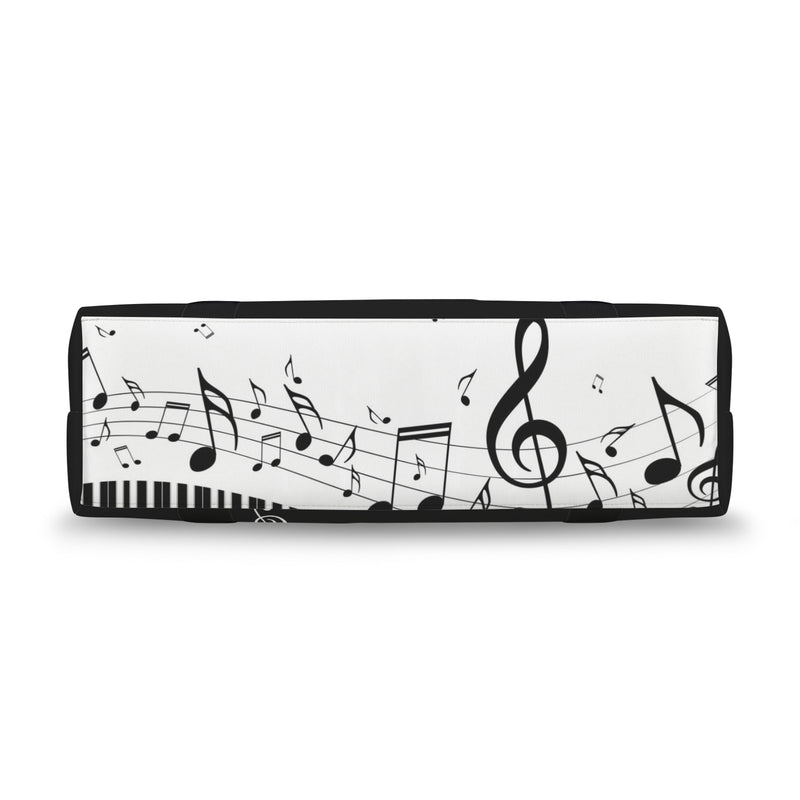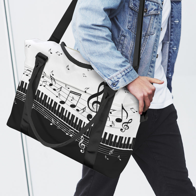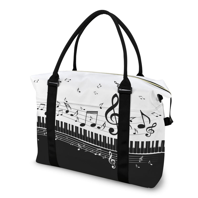 This spacious Piano & Music Large Travel Bag features piano keys with music notes design that celebrates your love for sound and style. The convenient trolley sleeve slides smoothly over your luggage handle, making airport runs and weekend getaways effortless. Crafted with durability in mind, it's the perfect companion for music lovers who refuse to compromise on flair or function.