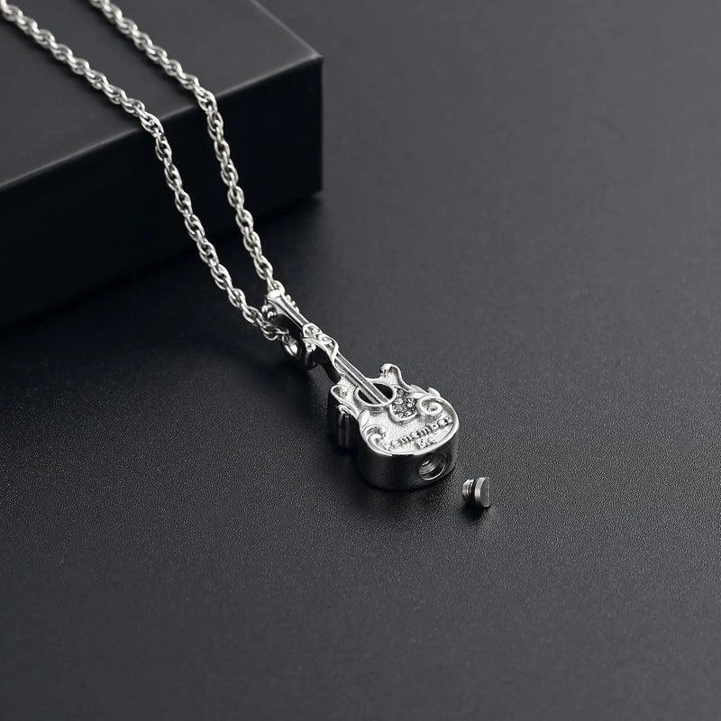 The Remember Me Guitar Pendant Cremation Necklaceprovides a comforting way to keep your loved one close. Its elegant guitar-shaped design holds a small portion of ashes, creating a meaningful keepsake that offers solace and connection.